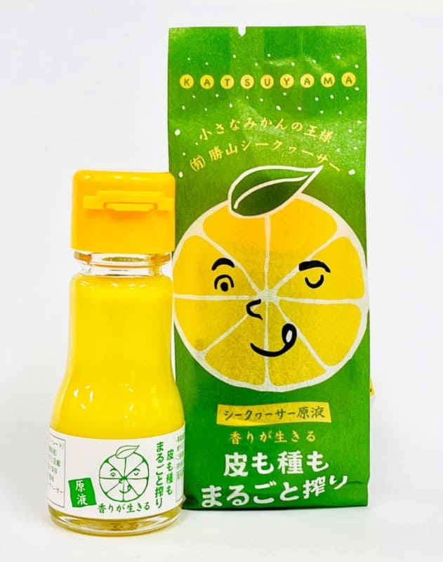沖縄・名護市勝山に自生する在来種のシークヮーサーを使用し、果皮ごとまるごと搾った100%沖縄県産のストレート果汁。